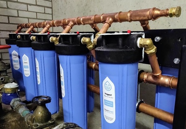 Het systeem wordt met meerdere beugels bevestigd aan de muur. De opstelling wordt voorzien van een terugstroombeveiliging en een bypass. Zo kan er onderhoud plaatsvinden aan het XL-systeem zonder dat het complex wordt afgesloten van het water. De doseerunits zijn tenslotte afgevuld met Siliphos® bolletjes.