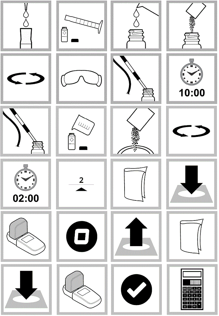 Voor het berekenen van het totaal fosfaat in water zijn 24 stappen nodig. De waardes kunnen niet met een eenvoudige thuistest worden berekend.