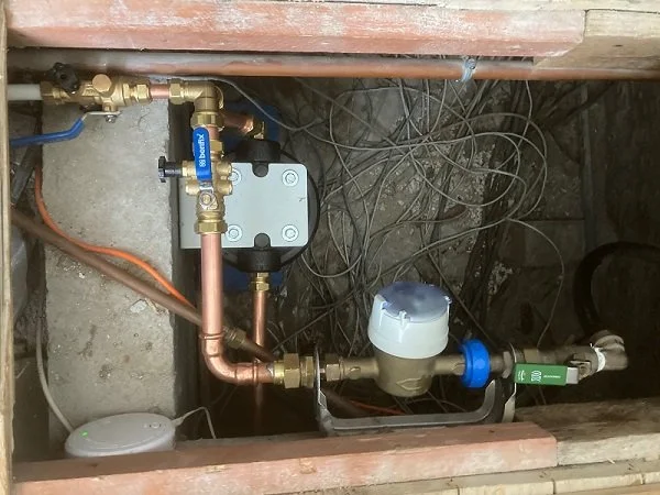 Waterleiding is al voor de meterkast opgesplitst