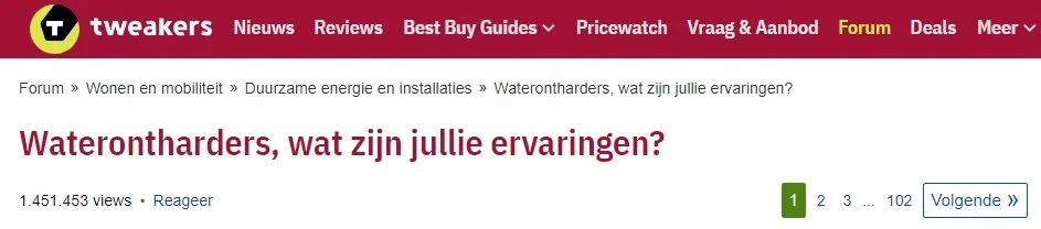 Op het Tweakers forum is er een onderwerp gestart met de vraag: Waterontharders, wat zijn jullie ervaringen? Dit onderwerp bevat maar liefst 102 pagina’s aan content en is bijna 1,5 miljoen keer bekeken!?